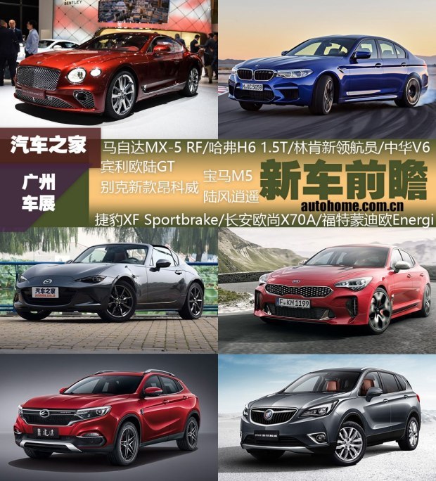 [汽车之家新闻] 四天之后(11月17日)就是广州车展正式开幕的日子了,今年的广州车展看点不少,上周的新车前瞻文章(传送门)已经出现了不少抢眼的明星,让人兴奋的角色陆续有来,今天我们继续看看车展还会有哪些引人注目的新车。很多新车型才刚刚在海外发布完没多久,就马上趁着新鲜劲来到我们身边了,例如全新的宾利欧陆GT和宝马M5。另外,越来越多有个性的车型也终于被大家盼来了,好像马自达MX-5 RF和捷豹XF Sportbrake,最后还有很多改款车型的推出,接下来就是划重点的时间了,看看都有哪些不能错过的新车。